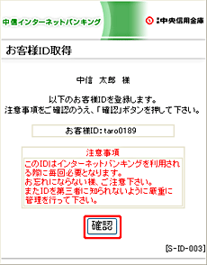 中信インターネットバンキングサービスでは、サービスご利用の際、お客様IDとログインパスワードをご入力いただく事により、 ご本人の確認を行います。