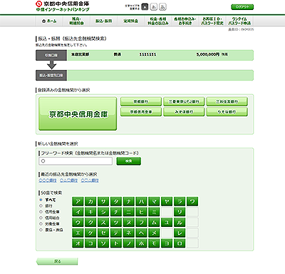 振込先の金融機関名を検索します。