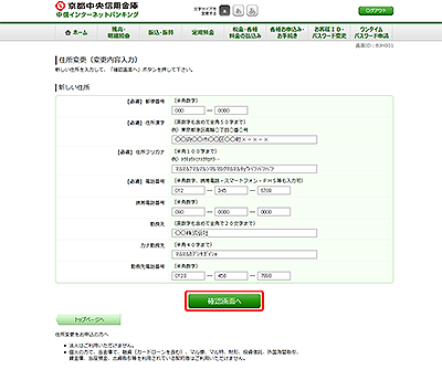 事前に登録されている代表口座・サービスご利用口座の住所変更申込受付がご利用になれます。