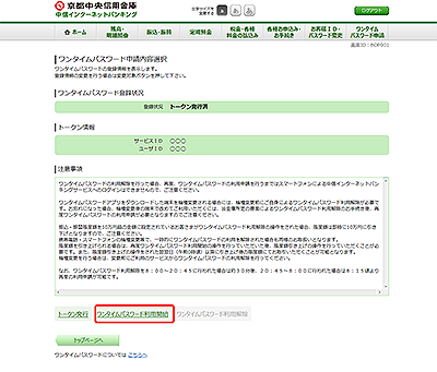 「ワンタイムパスワード利用開始」をクリックしてください。